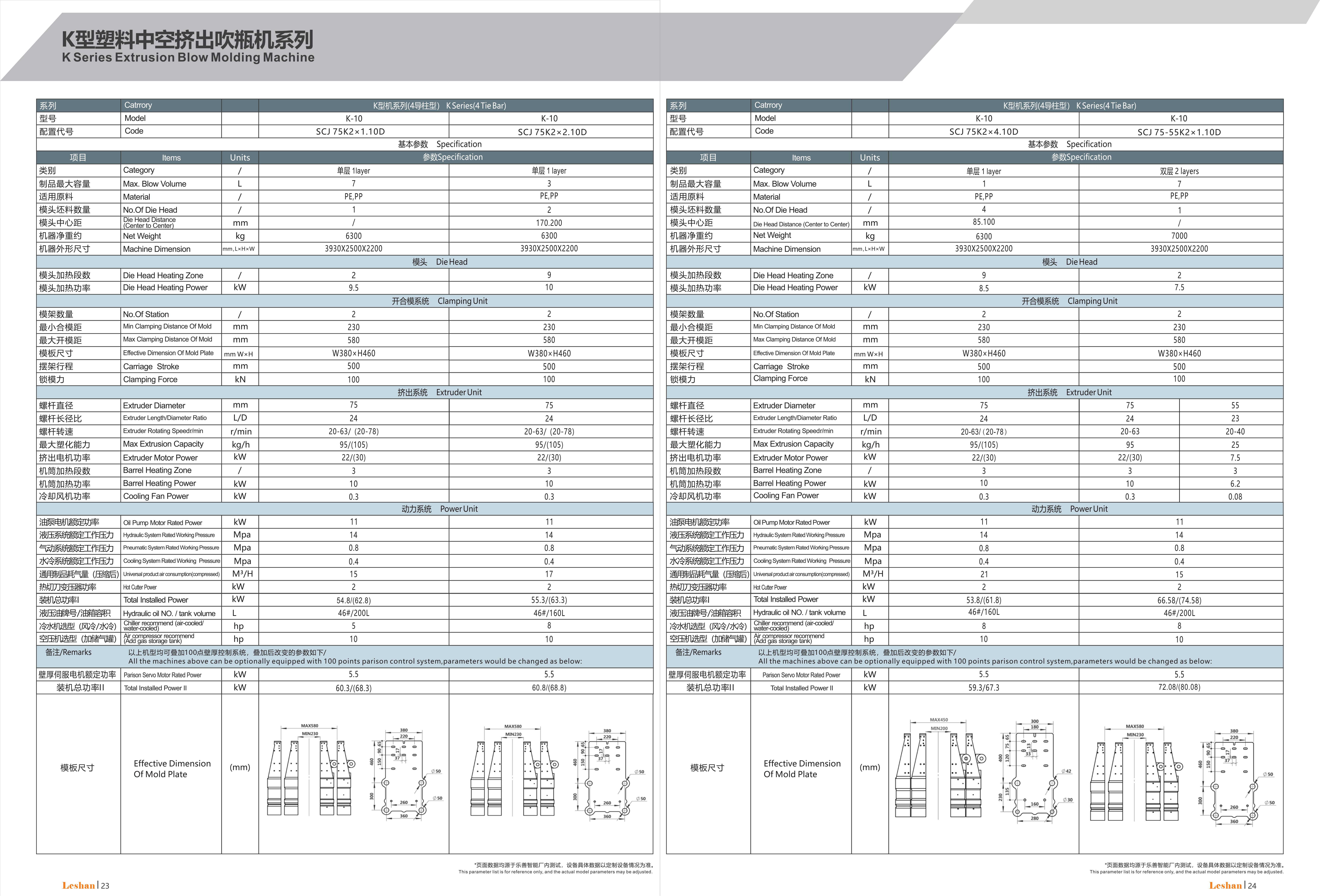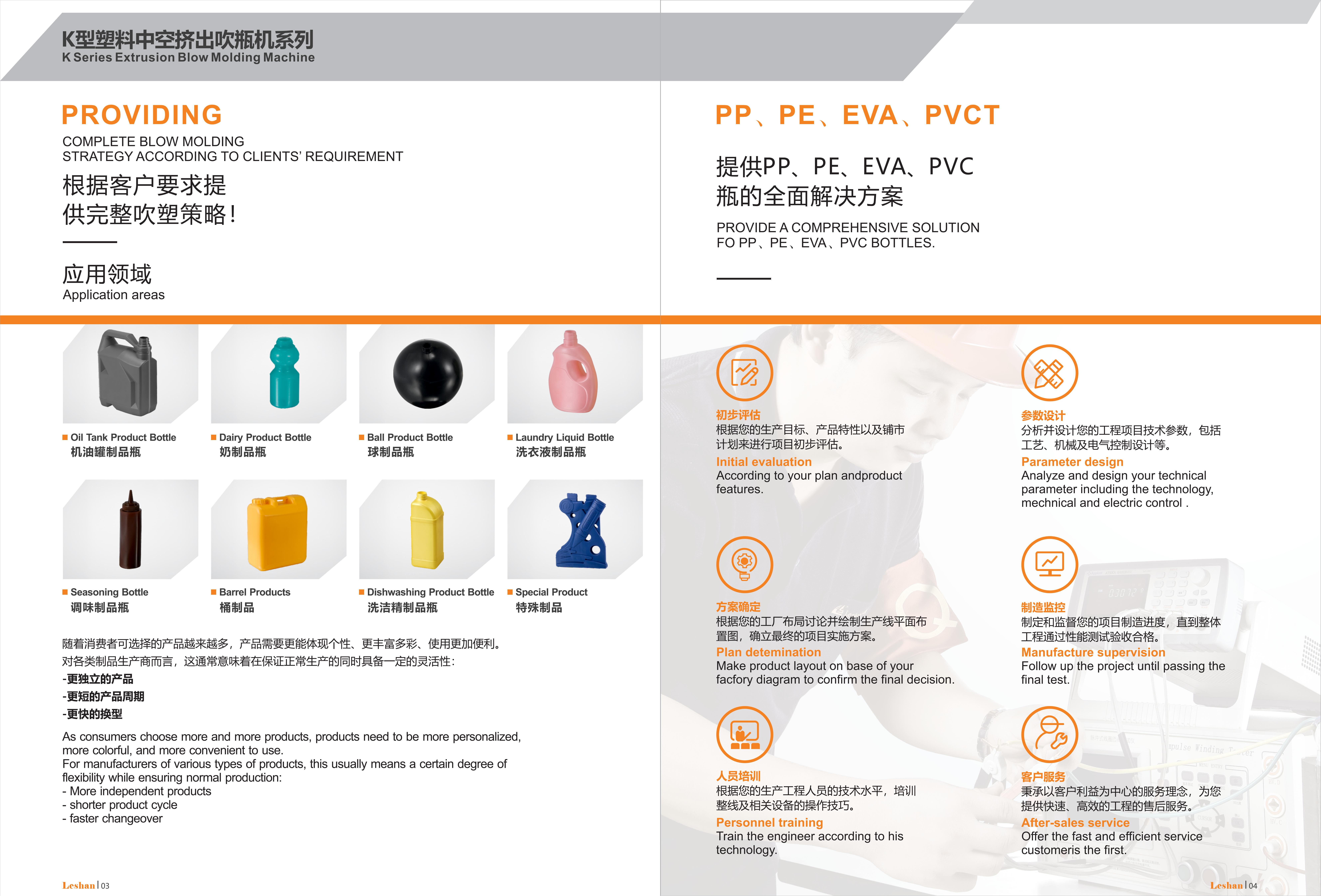 As LESHAN’s inaugural model, our Column Guide Molding Machine offers an economical, space-saving solution with low energy consumption. Its accessible cost makes it ideal for budget-conscious customers or those new to EBM technology. Featuring a robust four-column structure and three-plate clamping system, the machine reliably accommodates longer or wider molds, ensuring stable production of diverse containers like milk bottles, cosmetic bottles, and sea balls. This blend of affordability and suitable efficiency underscores its popularity in EBM molding.